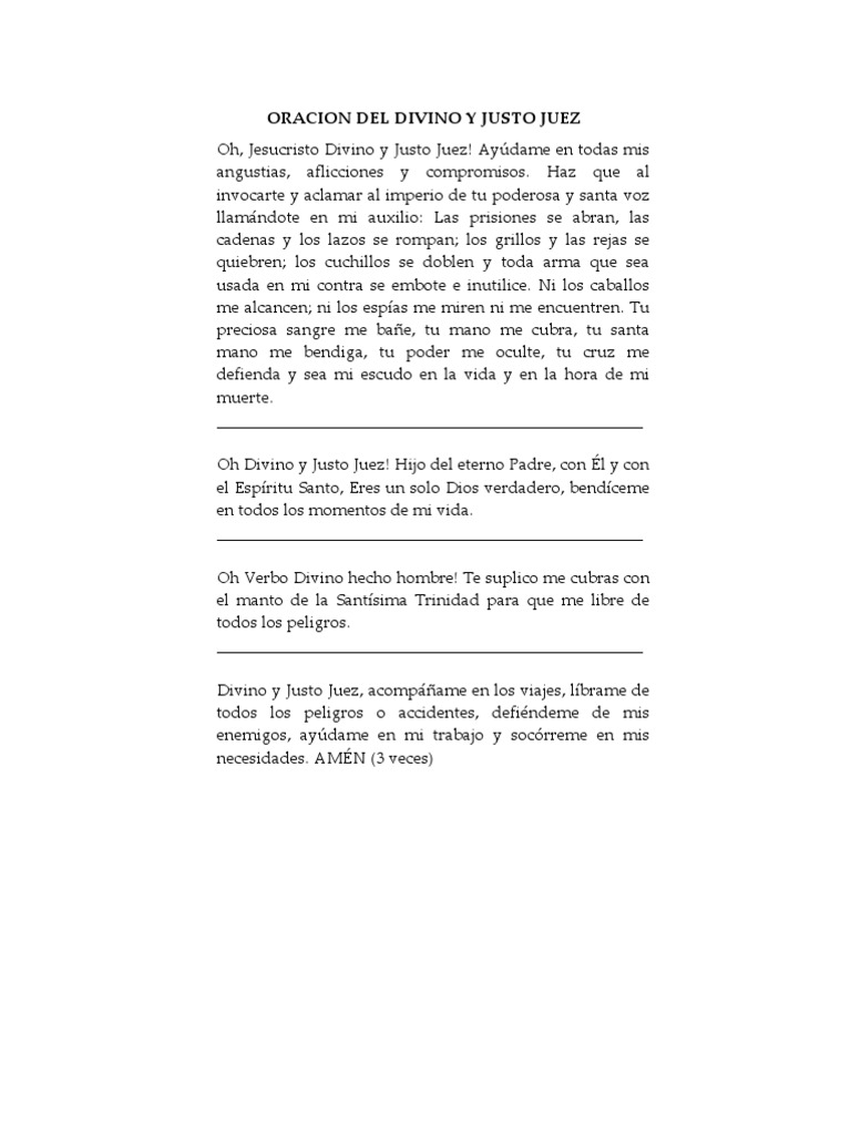 El santo rosario forma parte de los sacramentales; Este concilio es reconocido por las. Divino y justo juez, acompáñame en mi viaje, líbrame de todo peligro o accidente, defiéndeme de mis enemigos y socórreme en mis necesidades. En tu divino corazón, desbordante de misericordia para los pobres pecadores, especialmente en el sacramento de la penitencia. Vídeo de oración al justo juez